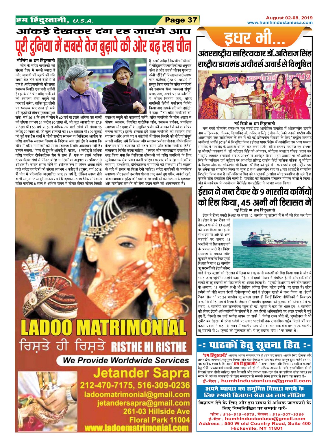 Hum Hindustani | Best Weekly Newspapers from USA Page: 37 August 02, 2019 Hum Hindustani | Best Weekly Newspapers from USA << First << 37 >> Last >> Page 1Page 2Page 3Page 4Page 5Page 6Page 7Page 8Page 9Page 10Page 11Page 12Page 13Page 14Page 15Page 16Page 17Page 18Page 19Page 20Page 21Page 22Page 23Page 24Page 25Page 26Page 27Page 28Page 29Page 30Page 31Page 32Page 33Page 34Page 35Page 36Page 37Page 38Page 39Page 40Page 41Page 42Page 43Page 44Page 45Page 46Page 47Page 48Page 49Page 50Page 51Page 52Page 53Page 54Page 55Page 56Page 57Page 58 × Hum Hindustani | Best Weekly Newspapers from USA Page-1Page-2Page-3Page-4Page-5Page-6Page-7Page-8Page-9Page-10Page-11Page-12Page-13Page-14Page-15page-16Page-17Page-18Page-19page-20Page-21Page-22page-23page-24Page-25Page-26Page-27Page-28page-29page-30Page-31Page-32Page-33Page-34Page-35Page-36Page-37Page-38Page-39Page-40Page-41Page-42Page-43Page-44Page-45Page-46Page-47Page-48Page-49Page-50Page-51Page-52Page-53Page-54Page-55Page-56Page-57Page-58