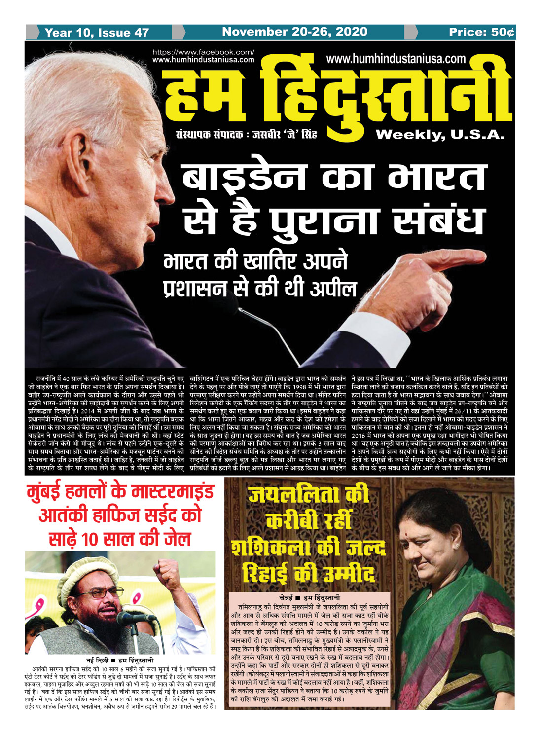 Hum Hindustani | Hindi Newspaper from USA November 20, 2020
