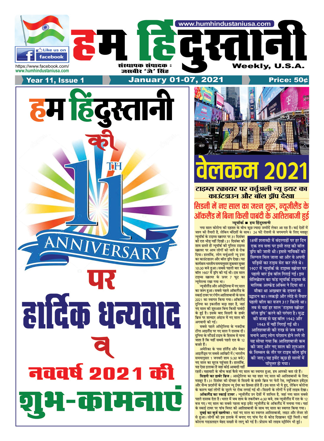 Hum Hindustani | Hindi Newspaper from USA January 01, 2021