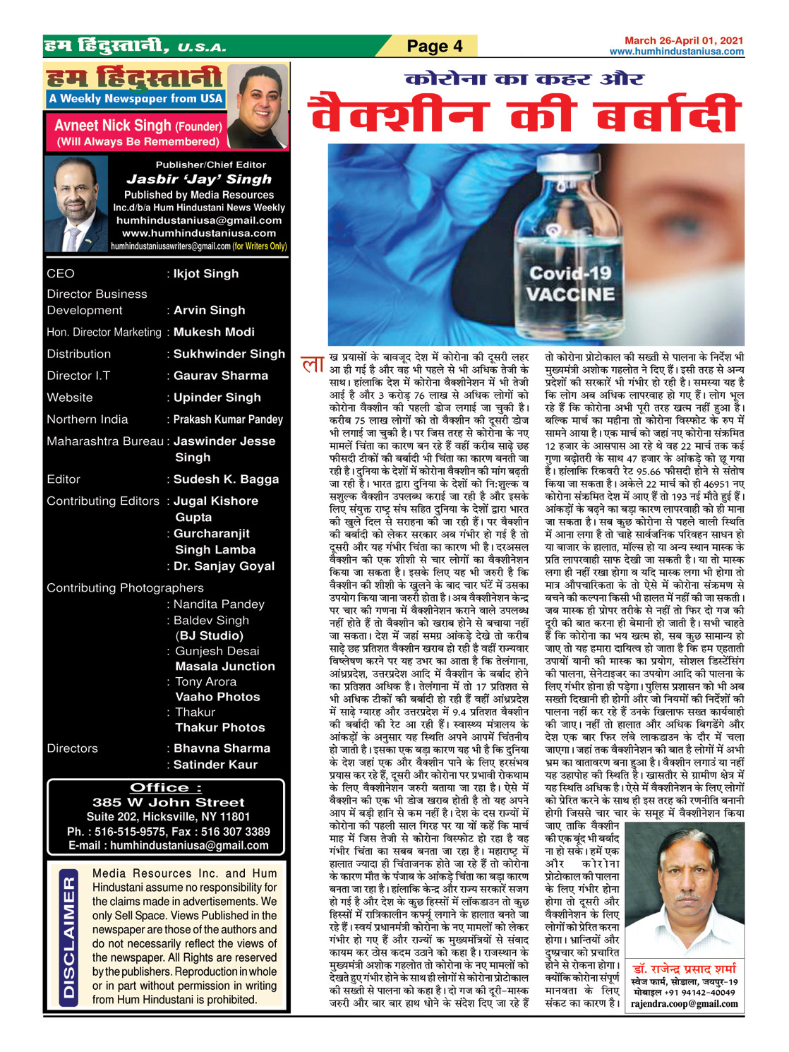 Hum Hindustani | Hindi Newspaper from USA Page: 4 March 26, 2021 Hum Hindustani | Hindi Newspaper from USA << First << 4 >> Last >> Page 1Page 2Page 3Page 4Page 5Page 6Page 7Page 8Page 9Page 10Page 11Page 12Page 13Page 14Page 15Page 16Page 17Page 18Page 19Page 20Page 21Page 22Page 23Page 24Page 25Page 26Page 27Page 28Page 29Page 30Page 31Page 32Page 33Page 34Page 35Page 36Page 37Page 38Page 39Page 40Page 41Page 42Page 43Page 44Page 45Page 46Page 47Page 48Page 49Page 50Page 51Page 52Page 53Page 54Page 55Page 56Page 57Page 58Page 59Page 60Page 61Page 62Page 63Page 64Page 65Page 66Page 67Page 68 × Hum Hindustani | Hindi Newspaper from USA page-1page-2page-3page-4page-5Page-6page-7Page-8Page-9Page-10Page-11page-12page-13page-14page-15Page-16Page-17page-18Page-19Page-20Page-21Page-22Page-23Page-24Page-25Page-26Page-27Page-28Page-29page-30Page-31Page-32page-33page-34Page-35Page-36Page-37Page-38Page-39Page-40Page-41Page-42Page-43Page-44Page-45Page-46Page-47Page-48Page-49Page-50Page-51Page-52Page-53Page-54Page-55Page-56Page-57Page-58Page-59Page-60Page-61Page-62Page-63Page-64Page-65Page-66Page-67Page-68