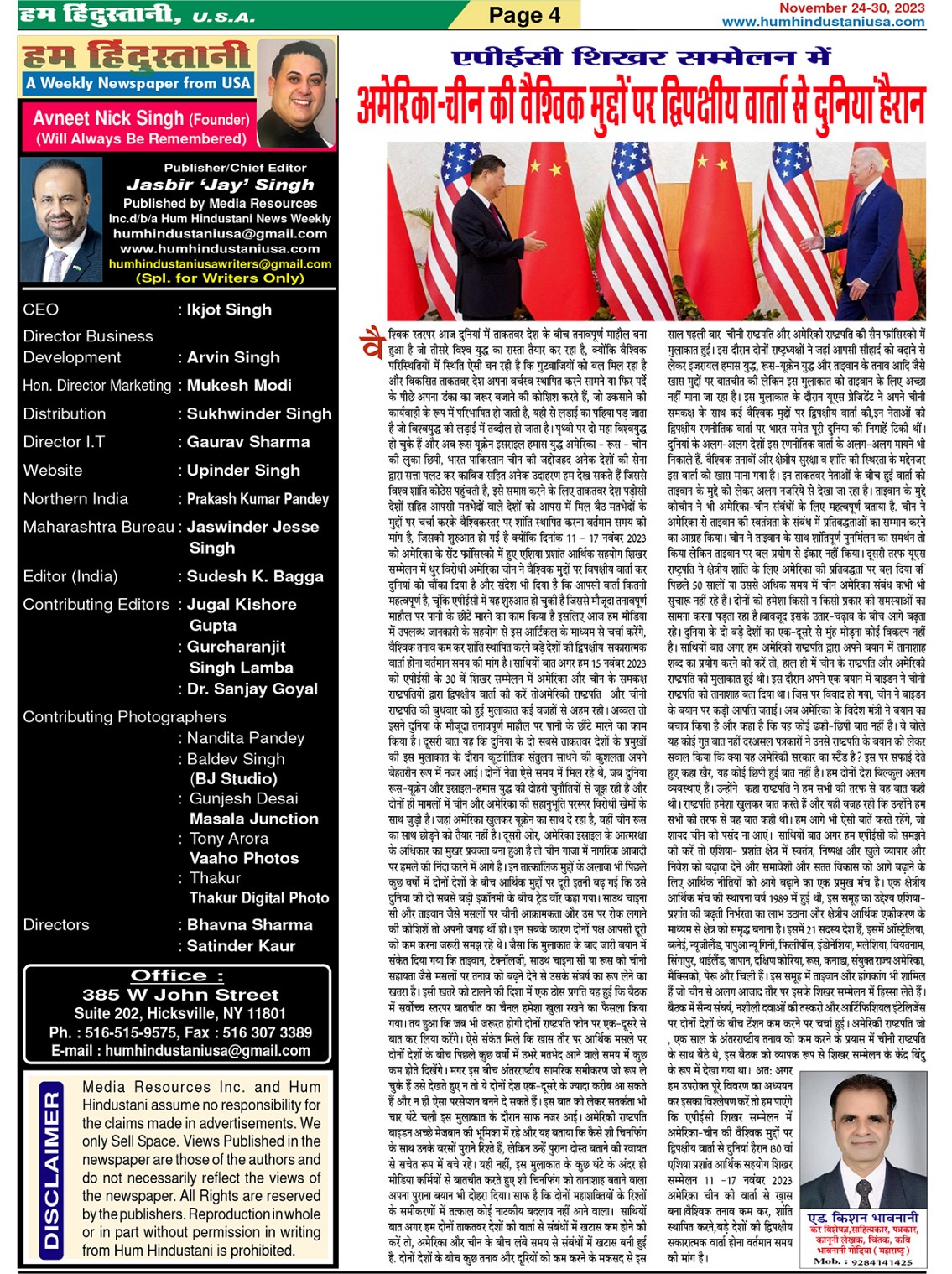Hum Hindustani | Best Hindi Newspaper in USA Page: 4 November 24, 2023 Hum Hindustani | Best Hindi Newspaper in USA << First << 4 >> Last >> Page 1Page 2Page 3Page 4Page 5Page 6Page 7Page 8Page 9Page 10Page 11Page 12Page 13Page 14Page 15Page 16Page 17Page 18Page 19Page 20Page 21Page 22Page 23Page 24Page 25Page 26Page 27Page 28Page 29Page 30Page 31Page 32Page 33Page 34Page 35Page 36Page 37Page 38Page 39Page 40Page 41Page 42Page 43Page 44Page 45Page 46Page 47Page 48Page 49Page 50Page 51Page 52Page 53Page 54Page 55Page 56Page 57Page 58Page 59Page 60Page 61Page 62Page 63Page 64Page 65Page 66Page 67Page 68 × Hum Hindustani | Best Hindi Newspaper in USA page-1page-2page-3page-4page-5page-6Page-7Page-8Page-9Page-10Page-11Page-12Page-13Page-14Page-15Page-16Page-17Page-18Page-19Page-20Page-21Page-22Page-23Page-24Page-25Page-26Page-27Page-28Page-29Page-30Page-31Page-32page-33Page-34Page-35Page-36Page-37Page-38Page-39Page-40Page-41Page-42Page-43Page-44Page-45Page-46Page-47Page-48Page-49Page-50Page-51Page-52Page-53Page-54Page-55Page-56Page-57Page-58Page-59Page-60Page-61Page-62Page-63Page-64Page-65Page-66Page-67Page-68