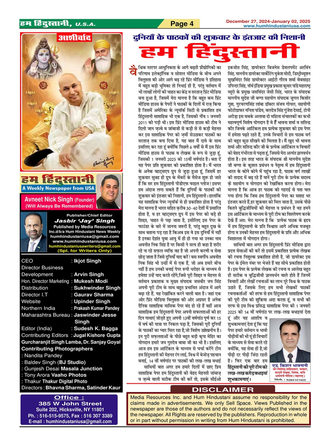 Best Weekly Hindi Newspaper in USA Page: 4 December 27, 2024 Best Weekly Hindi Newspaper in USA << First << 4 >> Last >> Page 1Page 2Page 3Page 4Page 5Page 6Page 7Page 8Page 9Page 10Page 11Page 12Page 13Page 14Page 15Page 16Page 17Page 18Page 19Page 20Page 21Page 22Page 23Page 24Page 25Page 26Page 27Page 28Page 29Page 30Page 31Page 32Page 33Page 34Page 35Page 36Page 37Page 38Page 39Page 40Page 41Page 42Page 43Page 44Page 45Page 46Page 47Page 48Page 49Page 50Page 51Page 52Page 53Page 54Page 55Page 56Page 57Page 58Page 59Page 60Page 61Page 62Page 63Page 64Page 65Page 66Page 67Page 68Page 69Page 70Page 71Page 72 × Best Weekly Hindi Newspaper in USA Page1Page2Page3Page4Page5Page6Page7Page8Page9Page10Page11Page12Page13Page14Page15Page16Page17Page18Page19Page20Page21Page22Page23Page24Page25Page26Page27Page28Page29Page30Page31Page32Page33Page34Page35Page36Page37Page38Page39Page40Page41Page42Page43Page44Page45Page46Page47Page48Page49Page50Page51Page52Page53Page54Page55Page56Page57Page58Page59Page60Page61Page62Page63Page64Page65Page66Page67Page68Page69Page70Page71Page72
