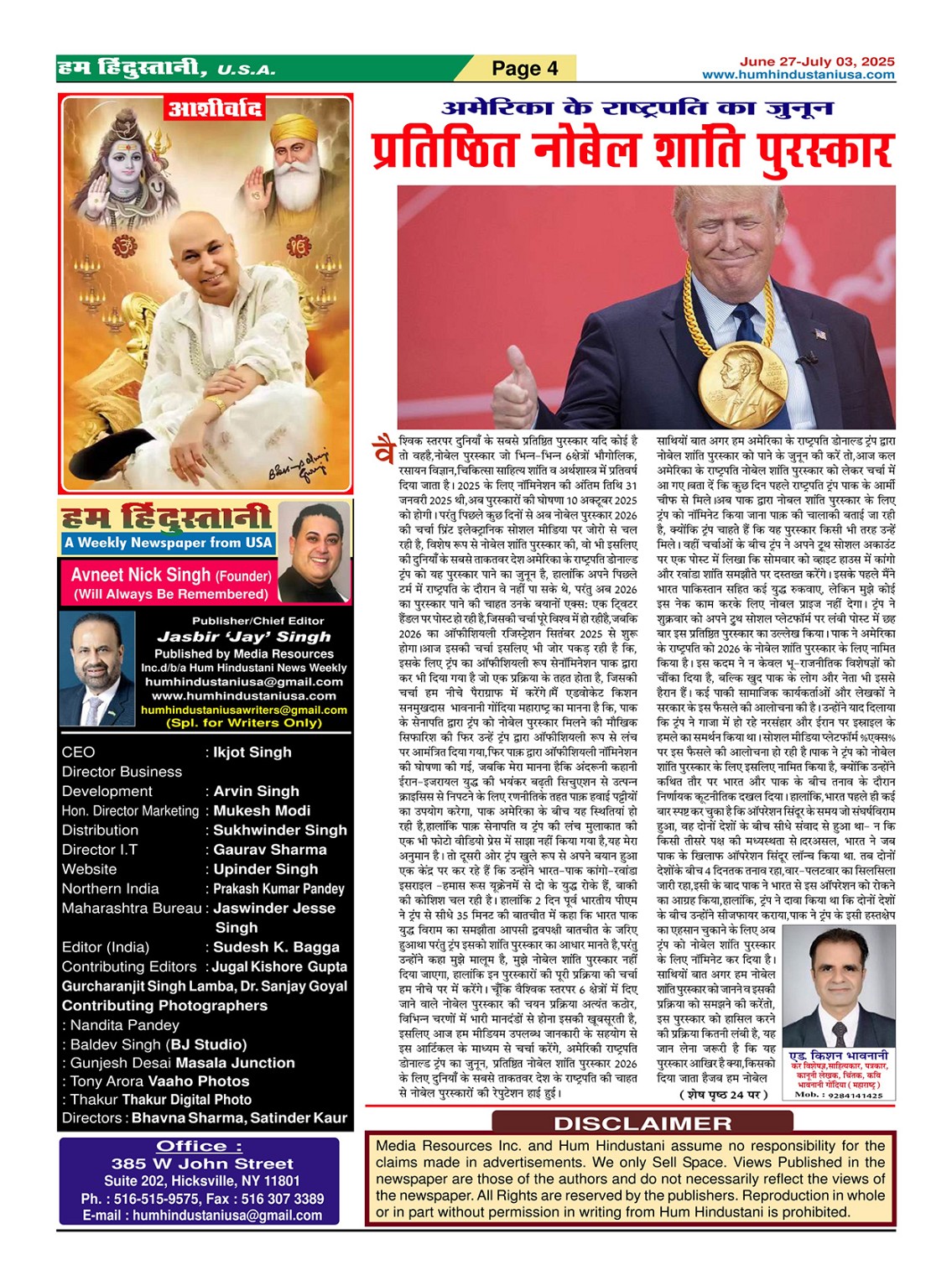 Best Weekly Hindi Newspaper in USA Page: 4 June 27, 2025 Best Weekly Hindi Newspaper in USA << First << 4 >> Last >> Page 1Page 2Page 3Page 4Page 5Page 6Page 7Page 8Page 9Page 10Page 11Page 12Page 13Page 14Page 15Page 16Page 17Page 18Page 19Page 20Page 21Page 22Page 23Page 24Page 25Page 26Page 27Page 28Page 29Page 30Page 31Page 32Page 33Page 34Page 35Page 36Page 37Page 38Page 39Page 40Page 41Page 42Page 43Page 44Page 45Page 46Page 47Page 48Page 49Page 50Page 51Page 52Page 53Page 54Page 55Page 56Page 57Page 58Page 59Page 60Page 61Page 62Page 63Page 64Page 65Page 66Page 67Page 68Page 69Page 70Page 71Page 72Page 73Page 74Page 75Page 76Page 77Page 78Page 79 × Best Weekly Hindi Newspaper in USA Page1Page2Page3Page4Page5Page6Page7Page8Page9Page10Page11Page12Page13Page14Page15Page16Page17Page18Page19Page20Page21Page22Page23Page24Page25Page26Page27Page28Page29Page30Page31Page32Page33Page34Page35Page36Page37Page38Page39Page40Page41Page42Page43Page44Page46Page47Page48Page49Page50Page51Page52Page53Page54Page55Page56Page57Page58Page59Page60Page61Page62Page63Page64Page65Page66Page67Page68Page69Page70Page71Page72Page73Page74Page75Page76Page77Page78Page79Page80
