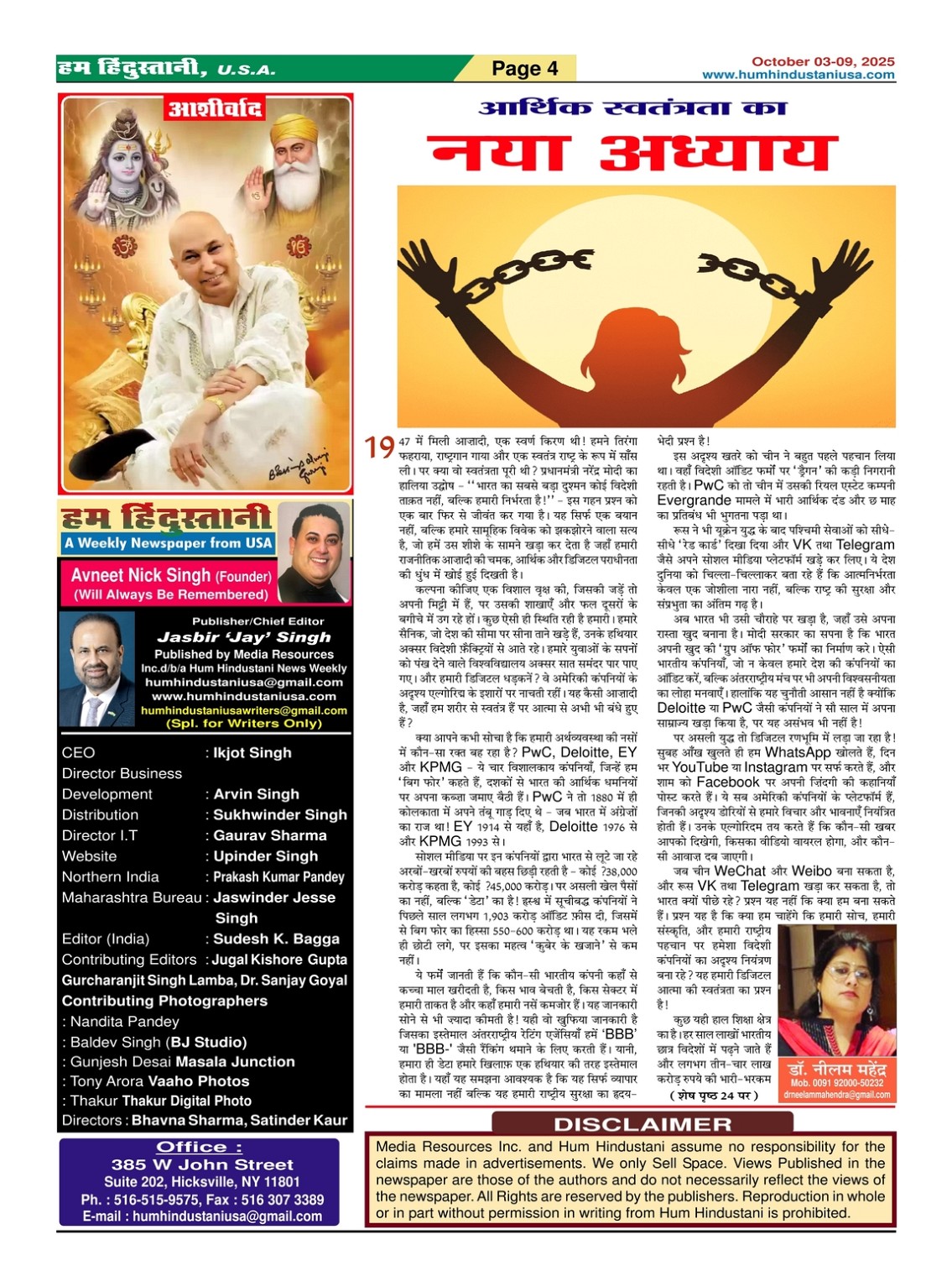 Best Weekly Hindi Newspaper in USA Page: 4 October 03, 2025 Best Weekly Hindi Newspaper in USA << First << 4 >> Last >> Page 1Page 2Page 3Page 4Page 5Page 6Page 7Page 8Page 9Page 10Page 11Page 12Page 13Page 14Page 15Page 16Page 17Page 18Page 19Page 20Page 21Page 22Page 23Page 24Page 25Page 26Page 27Page 28Page 29Page 30Page 31Page 32Page 33Page 34Page 35Page 36Page 37Page 38Page 39Page 40Page 41Page 42Page 43Page 44Page 45Page 46Page 47Page 48Page 49Page 50Page 51Page 52Page 53Page 54Page 55Page 56Page 57Page 58Page 59Page 60Page 61Page 62Page 63Page 64Page 65Page 66Page 67Page 68Page 69Page 70Page 71Page 72Page 73Page 74Page 75Page 76 × Best Weekly Hindi Newspaper in USA page-1page-2page-3page-4page-5page-6page-7Page-8Page-9Page-10Page-11page-12page-13page-14page-15Page-16Page-17Page-18Page-19Page-20Page-21Page-22Page-23Page-24Page-25Page-26Page-27Page-28Page-29Page-30Page-31Page-32page-33Page-34Page-35Page-36Page-37Page-38Page-39Page-40Page-41Page-42Page-43Page-44Page-45Page-46Page-47Page-48Page-49Page-50Page-51Page-52Page-53Page-54Page-55Page-56Page-57Page-58Page-59Page-60Page-61Page-62Page-63Page-64Page-65Page-66Page-67Page-68Page-69Page-70Page-71Page-72Page-73page-74page-75Page-76